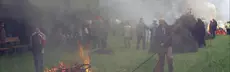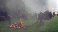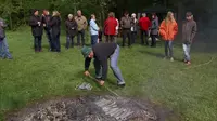 Die Tannenzweige, die Familien, Freunde oder Vereine zuvor zu Haufen zusammengetragen haben, werden angezündet.