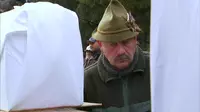 Horst Rieche ist als Kampfrichter und Teilnehmer dabei. Hier inspiziert er, ob beim Finkenschlagen alles seine Ordnung hat.